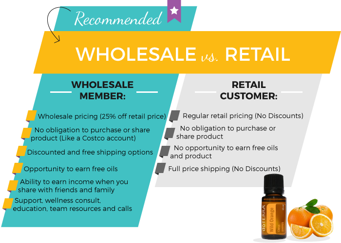 doTERRA offers product through a yearly wholesale membership. For a low membership fee of $35.00, a doTERRA Wholesale Account will be able to purchase products at wholesale prices 25% below retail.
